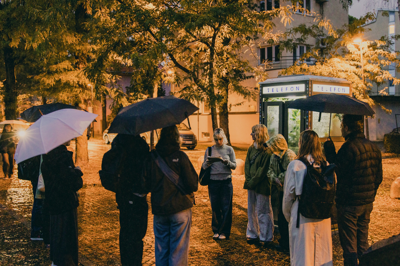 Telefonska govorilnica, prostor stika na daljavo, tukaj postane prostor spomina. V njej se srečajo svetloba, beseda in tišina. Obiskovalca vabita, da v tej tišini poišče svoje razglednice poletja, ki jih ne pošljemo nikomur, a jih vsi v sebi nosimo.