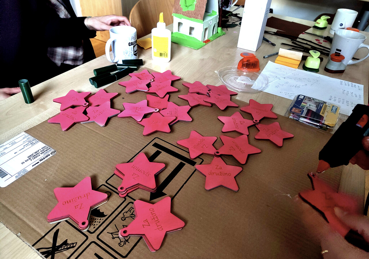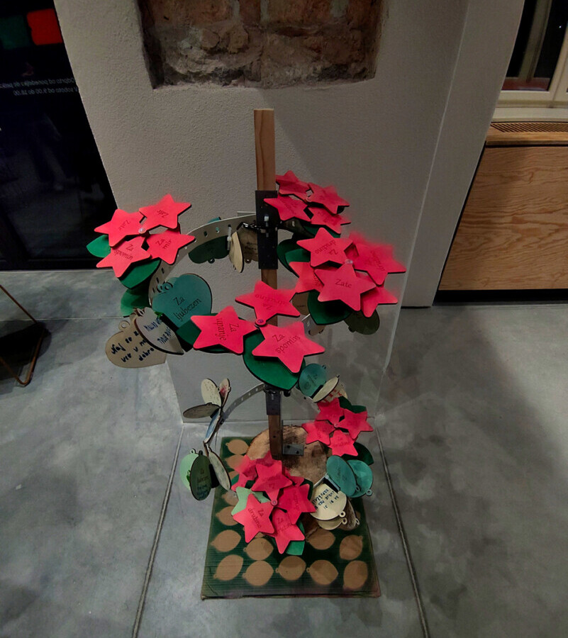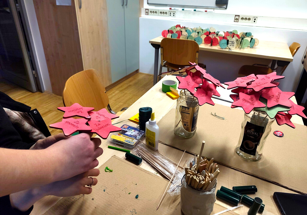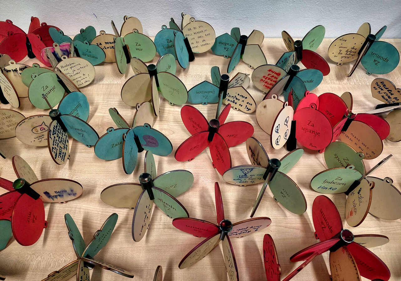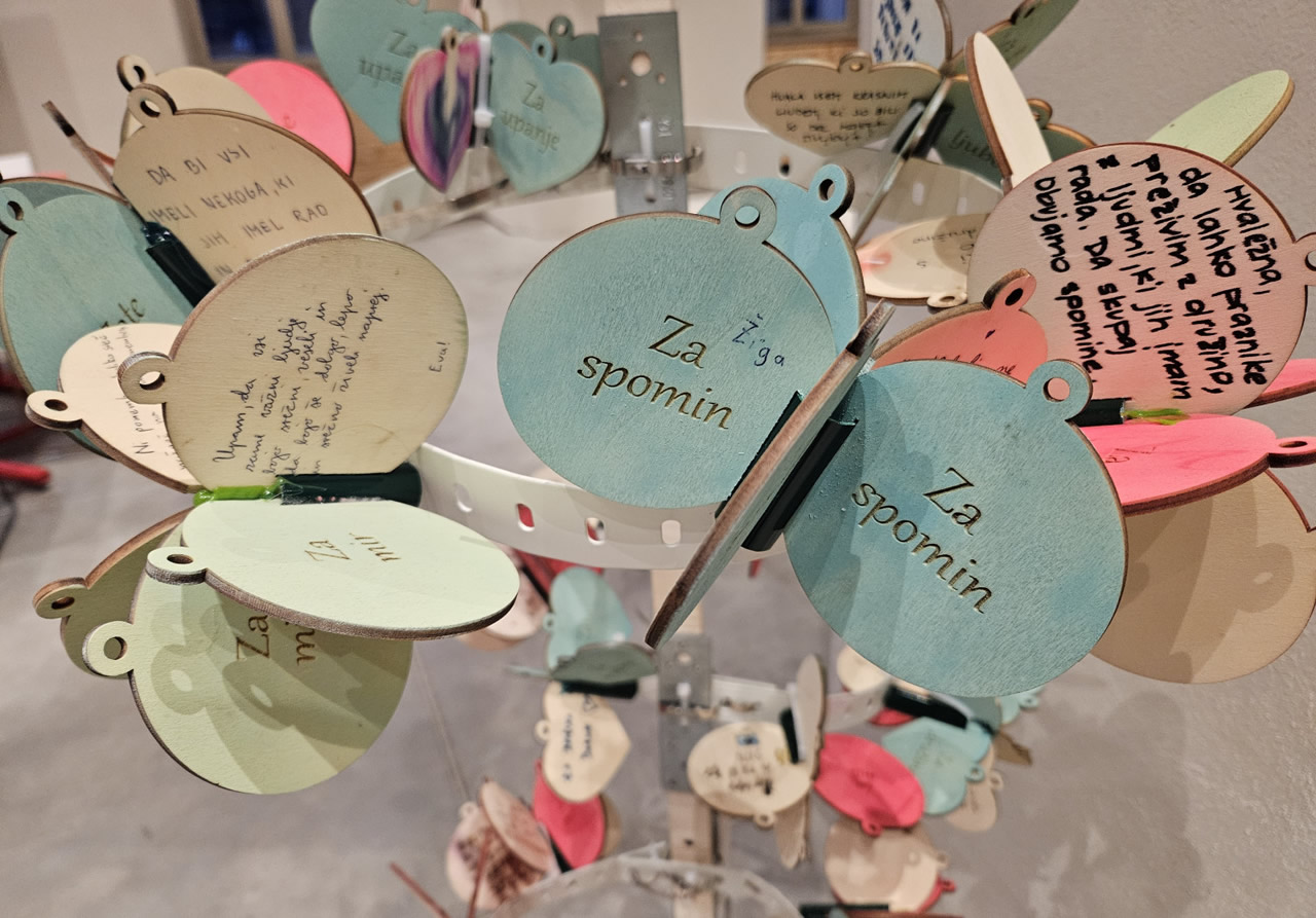V Četrtnem mladinskem centru Šiška, so imeli mladi v mesecu marcu priložnost ustvarjati skupnostno umetnino iz okraskov Drevesa hvaležnosti. Te nam je prijazno poklonilo podjetje ŽALE. Njihovi obiskovalci so na lesene okraske zapisovali svoje misli, želje, zahvale in spomine. Mi pa smo jih na dveh delavnicah preoblikovali v prostorsko umetnino, ki v sebi nosi spomin na Drevo hvaležnosti.